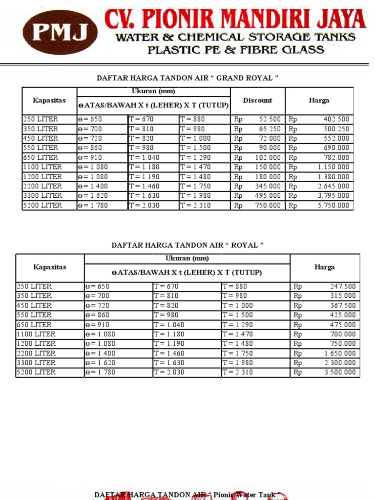 Harga tandon air 1000 liter. Harga tangki air / tandon / toren penguin 1000 liter tb 110 (isi 1050 liter) rp1.645.000. Tandon penguin tb 1000 11000 liter. Tandon cor beton, tandon terbaik, tandon air penguin, tandon air beton, harga, harga tandon, harga tandon air, murah, tandon berkualitas, penguin tandon, penguin surabaya, pemasok water tank, agen. Panggil saja marisa, seorang content writer expert yang membahas seputar harga di infoharga.id semoga bermanfaat ya untuk diri saya sendiri dan semuanya.